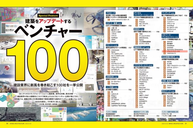 日経アーキテクチュア2022年6月23号「建築をアップデートするベンチャー100」にて、弊社が運営する建築メタバースプラットフォーム「comony」を取り上げていただきました。メタバース・デジタルツインのカテゴリで紹介されています。